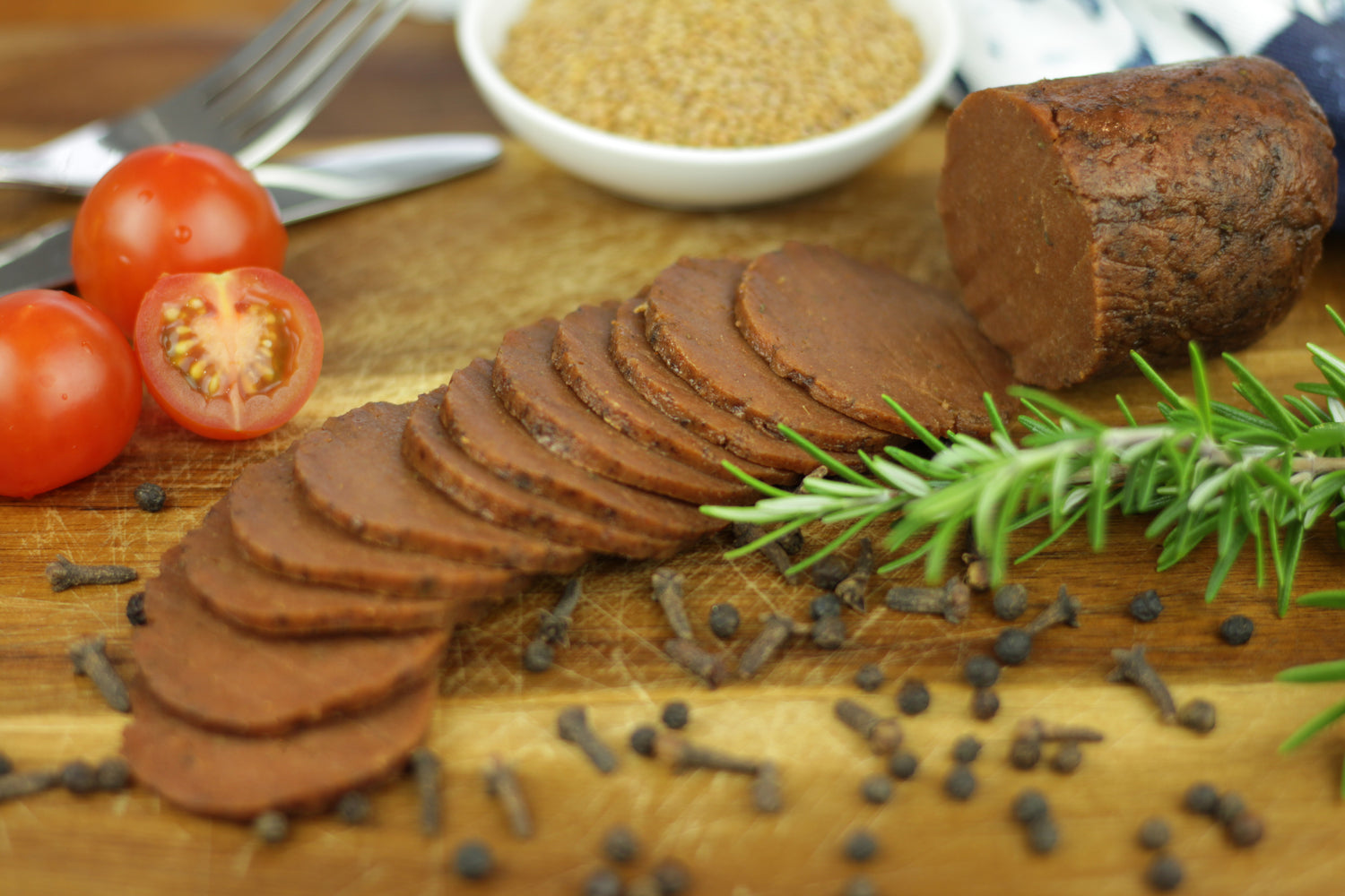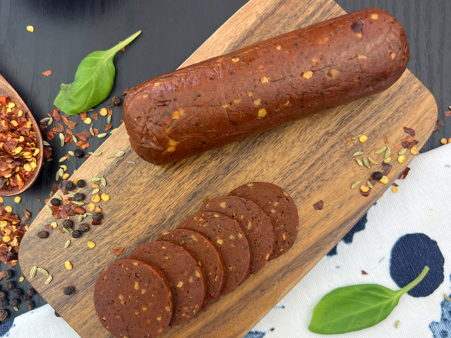 Our plant-based deli Pepperoni Style features a rich flavour profile. Infused with bold spices and herbs, it brings a savoury, smoky flavour with a peppery and mild spicy kick. Perfect for pizzas, salads, sandwiches, pasta, and gourmet shared platters. Make every bite extraordinary!